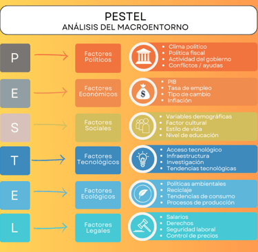 Es una herramienta para el análisis del macroentorno que permite conocer las fuerzas externas a nivel macroeconómico que afectan a la empresa. Realizando este tipo de análisis podremos conocer a qué variables económicas se va a enfrentar la empresa en un futuro, permitiendo que nos adelantemos al mercado.